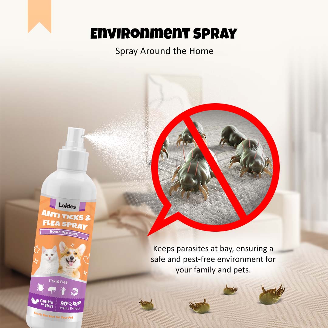 Lindungi haiwan kesayangan dan rumah anda dengan Lokies™ Semburan Kawalan Kutu & Hama Selamat Untuk Semua Baka — solusi kawalan serangga yang membantu menghapuskan kutu, hama dan serangga merayap, sambil memastikan persekitaran lebih bersih.