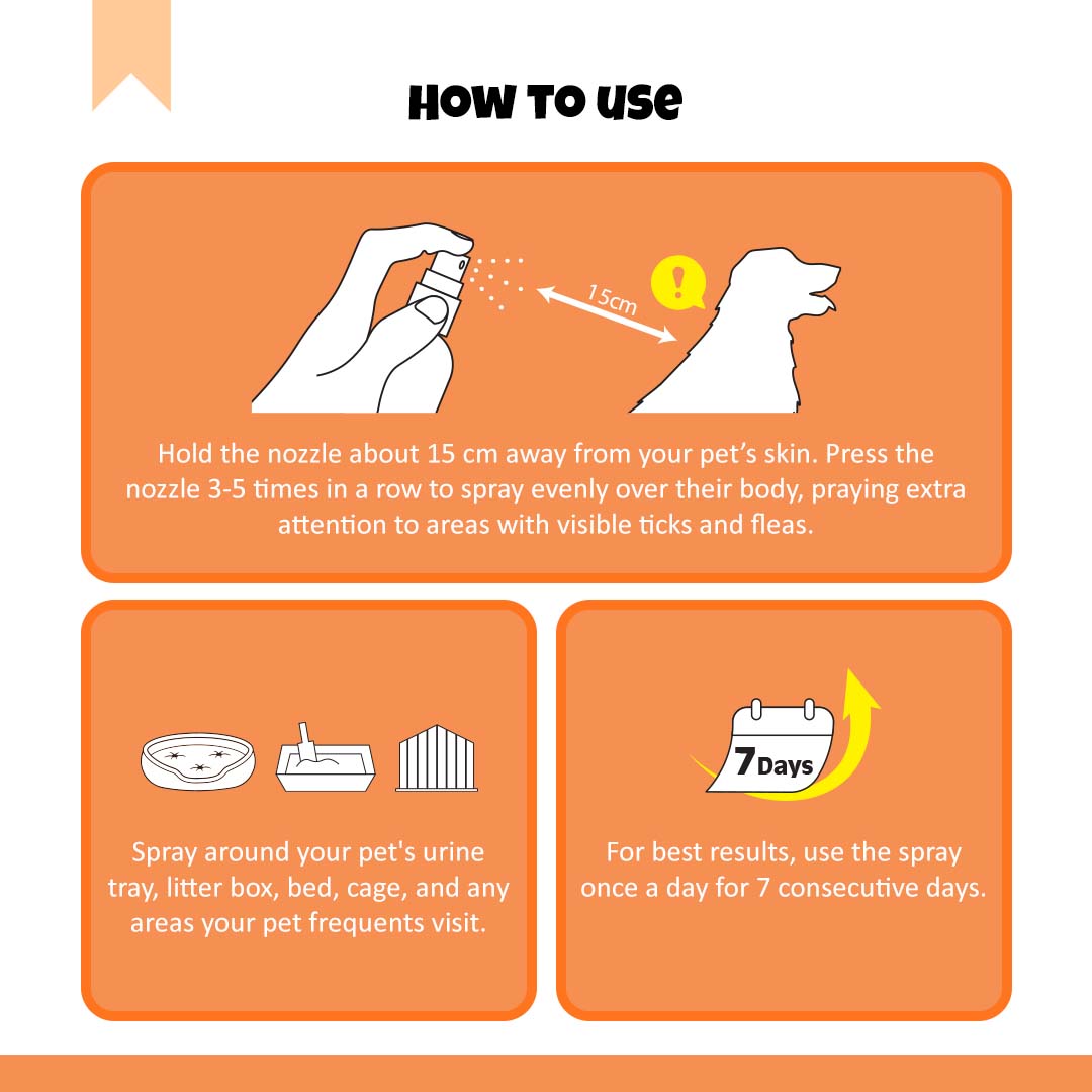 Suitable for all breeds and sizes, this spray is ideal for routine prevention and infestation control, especially in multi-pet households.