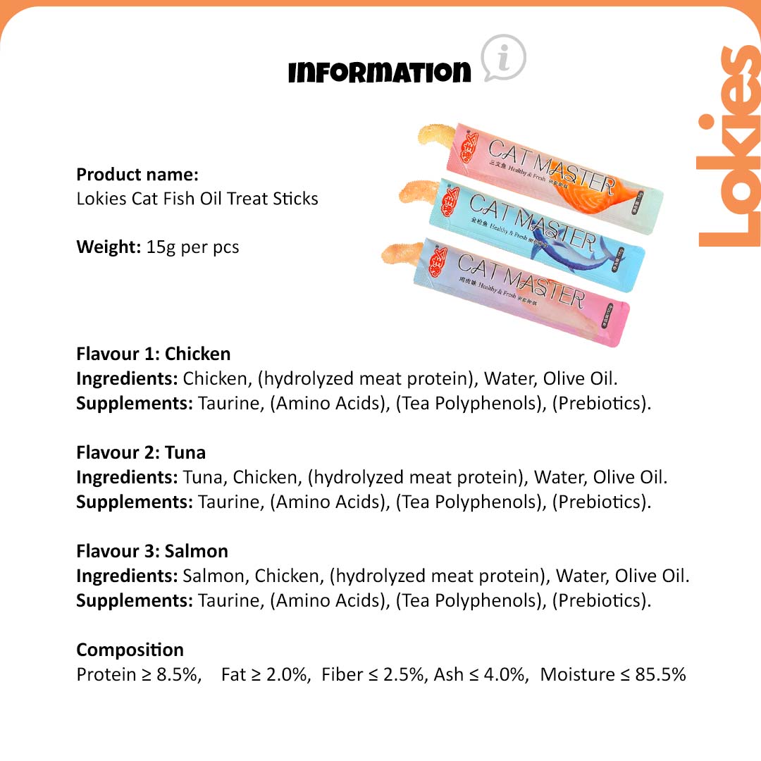 Manjakan kucing kesayangan anda dengan Lokies™ Fish Oil Cat Stick Snack — snek berkrim berkhasiat kaya Omega-3 & Omega-6, dirumus khas untuk kulit sihat, bulu berkilat & membantu mengurangkan hairball (gumpalan bulu).