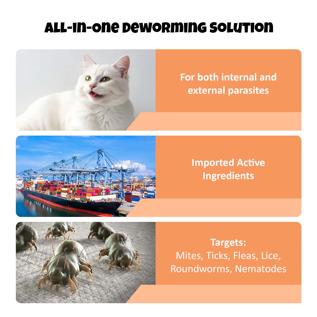 • Anti-Flea & Deworming Formula – Dual-action treatment for complete parasite control.
