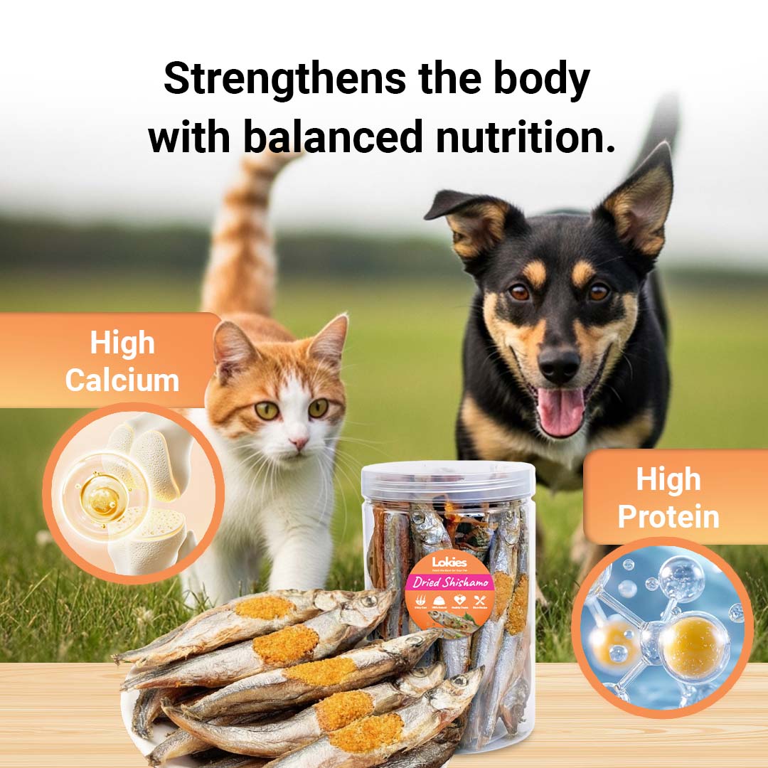 🌟 PRODUCT OVERVIEW / PENERANGAN PRODUKTreat your pets to a natural, whole-food snack with Lokies™ Freeze-Dried Shishamo Smelt Fish — made from 100% whole shishamo fish, gently freeze-dried to preserve Omega fatty acids, natural calcium, protein, and crunchy fish goodness. 🐶🐱🐟Manjakan haiwan kesayangan anda dengan snek semula jadi menggunakan Lokies™ Freeze-Dried Shishamo Smelt Fish — diperbuat daripada ikan shishamo penuh 100%, diproses melalui kaedah freeze-dry untuk mengekalkan Omega, kalsium semula jadi, protein & nutrisi penting.As a whole fish snack, shishamo provides bone-in calcium, Omega-rich oils, and complete nutrition, making it ideal as a healthy snack, food topper, or enrichment chew for cats and dogs. Sebagai snek ikan penuh, shishamo membekalkan kalsium dari tulang, Omega semula jadi & nutrisi lengkap, sesuai sebagai snek sihat, topper makanan atau snek rangsangan untuk kucing & anjing.