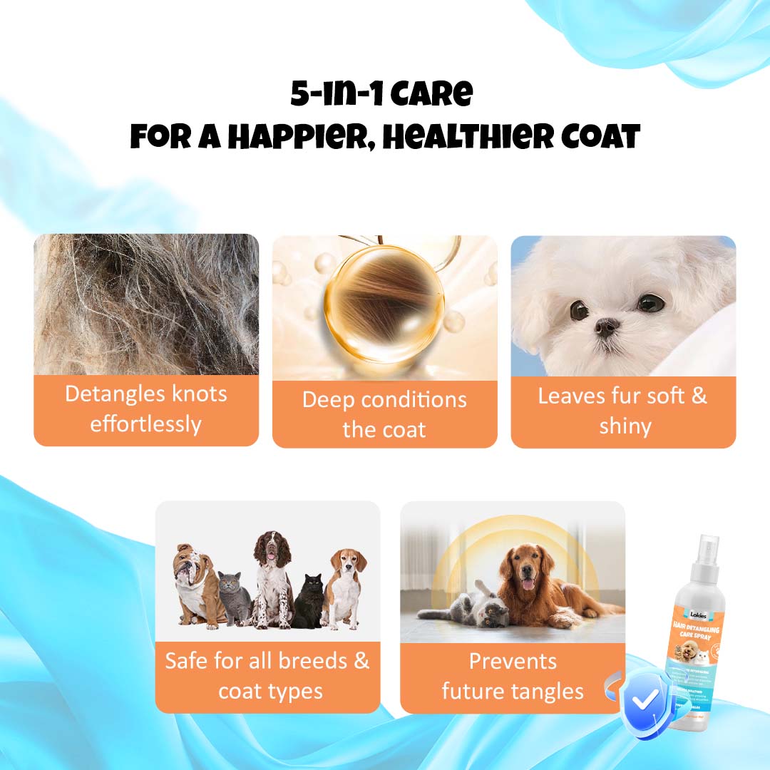 Achieve smoother, softer, and tangle-free fur effortlessly with Lokies™ Pet Leave-On Conditioner Spray — a lightweight detangling solution that helps reduce knots, control frizz, and improve coat manageability without rinsing. 🐶🐱✨