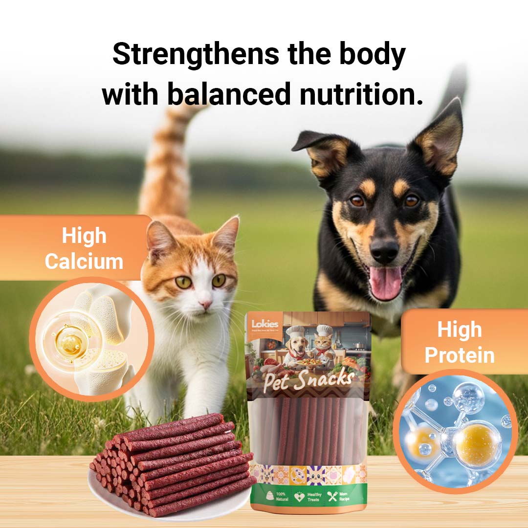 Tingkatkan tenaga & kesihatan haiwan peliharaan anda dengan Lokies™ Beef Stick — snek daging berprotein tinggi yang diperbuat daripada daging lembu sebenar, kaya dengan asid amino penting untuk pertumbuhan otot, pembaikan tubuh & tenaga harian.