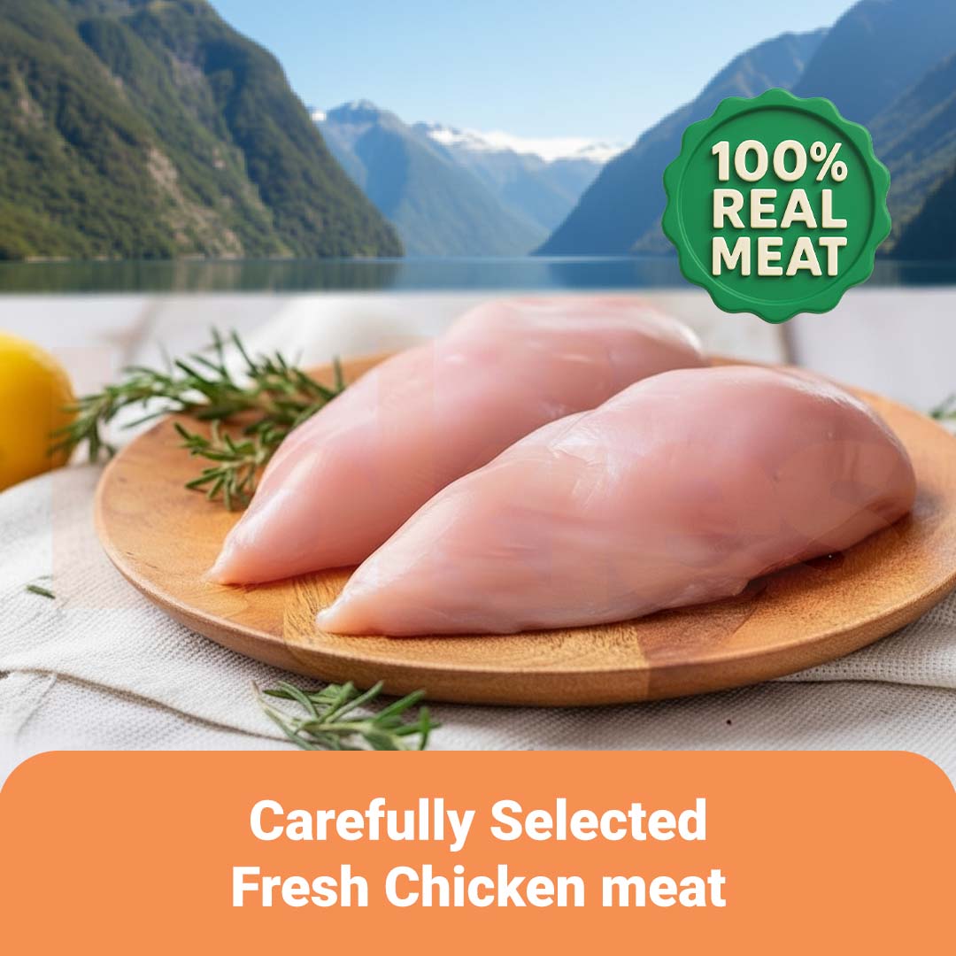 High in protein and low in fat, this treat supports muscle growth, energy, and healthy skin & coat — the perfect guilt-free snack for daily feeding! Tinggi protein, rendah lemak — membantu pertumbuhan otot, tenaga, serta kulit & bulu sihat — sesuai sebagai snek sihat setiap hari!
