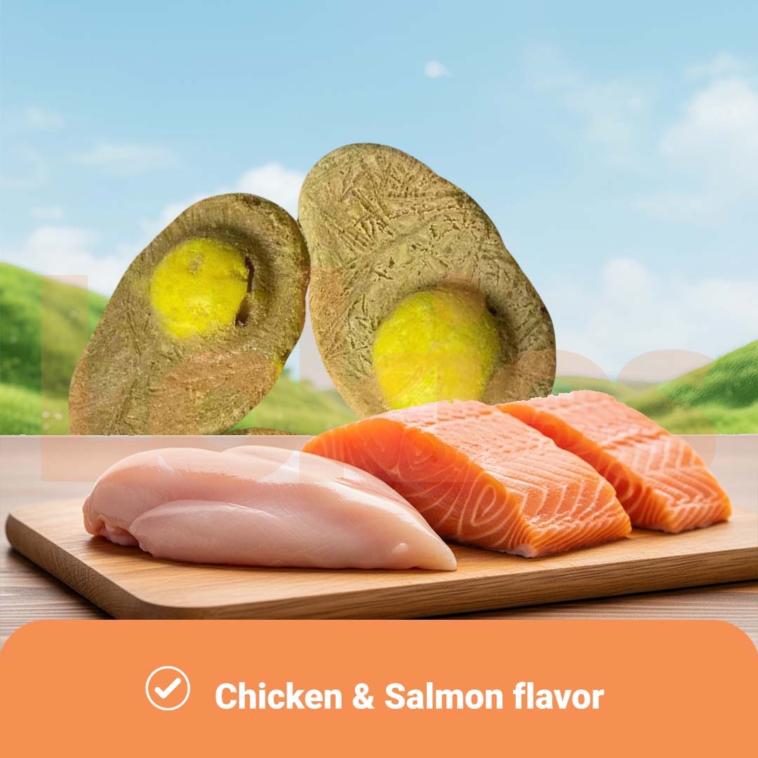 1️⃣ High Protein from Chicken & Salmon / Protein Tinggi Daripada Ayam & Salmon Supports muscle growth, energy, and strong immune health. Menyokong pertumbuhan otot, tenaga, dan kesihatan imun.