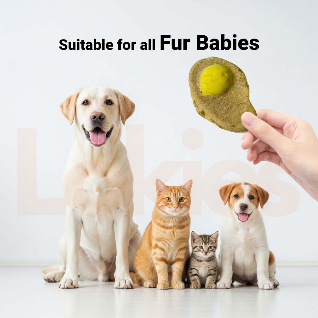 8️⃣ Suitable for Cats & Dogs / Sesuai Untuk Kucing & Anjing Formulated for multi-pet households — one treat for all! Sesuai untuk rumah dengan pelbagai jenis haiwan peliharaan.